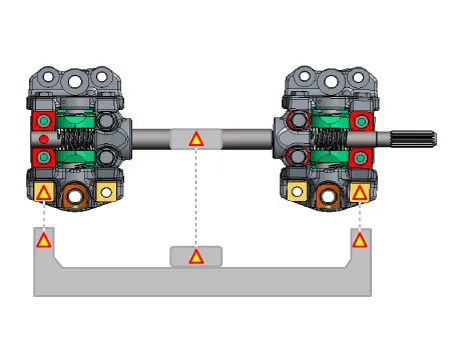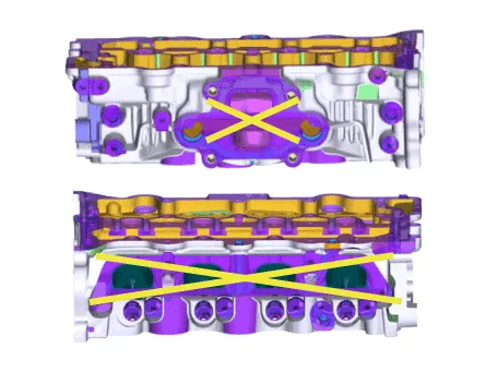 If CVVD fixing jig is available, be sure to work by using it. When Using the CVVD fixture 1. When installing the CVVD assembly mounting bolts (M6), tighten sequence shown. Tightening torque : 1ST 4.9 - 6.9 N.m (0.5 - 0.7 kgf.m, 3.6 - 5.1 lb-ft) 2nd 9.8 - 11.8 N.m (1.0 - 1.2 kgf.m, 7.2 - 8.7 lb-ft) |