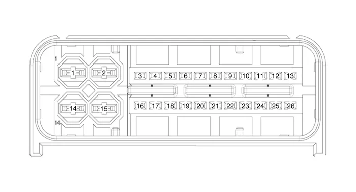 | 1 | Ground 2 (Power) | 14 | Battery power 2 (Motor) |