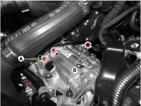 | 18. | Remove the intercooler inlet pipe bracket (A).