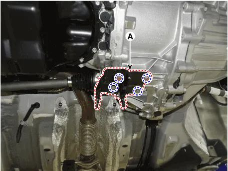 | 16. | Remove the transmission support bracket (A) after loosening the mounting bolts.