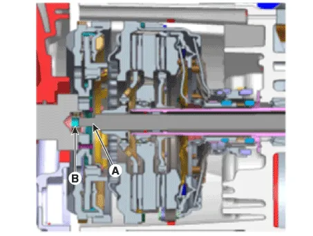 | 24. | Loosen the transmission lower mounting bolts (A, B).