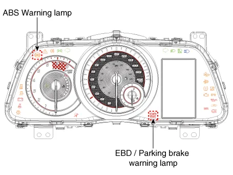 | 2. | PARKING/EBD warning lamp module The active EBD warning lamp module indicates the self-test and failure status of the EBD. However, in case the Parking Brake Switch is turned on, the EBD warning lamp is always turned on regardless of EBD functions. The EBD warning lamp shall be on :