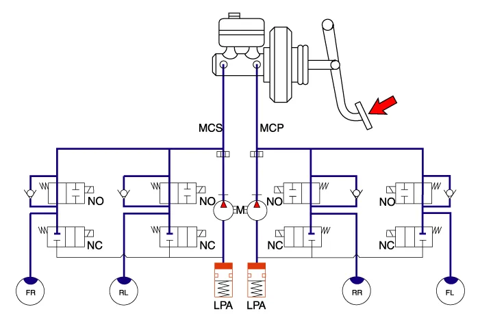 | – | Brake tube length from Master cylinder port to HECU inlet port should be max. 1m |