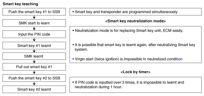 This mode is used by the dealers in order to replace SMK and/or the set of keys, or to register additional keys for an existing system. That means the system already has been learnt with certain PIN Code. The PIN Code is fixed for the life time of the vehicle, therefore the same PIN Code must be used in this mode. Otherwise learning will be failed