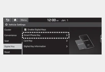 From the infotainment screen menu, go to [Setup] - [Vehicle] - [Digital Key]