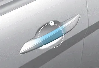 You should contact your smartphone’s NFC antenna(backside of phone) to door handle authentication pad (1) marked position near by the lock button) of driver’s (or front passenger’s) outside door for 2 seconds to lock or unlock the doors. If the Two Press Unlock feature is applied (press twice for unlocking), driver’s seat door will be unlocked by contacting the digital key (smartphone key). In this state, if you contact one more time within 4 seconds, all the doors unlock. Please make sure the doors are locked. If you do not open any of the doors after unlocking, it automatically re-lock after 30 seconds.