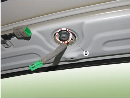 | 4. | Remove the roof antenna (A) after loosening a nut (B).