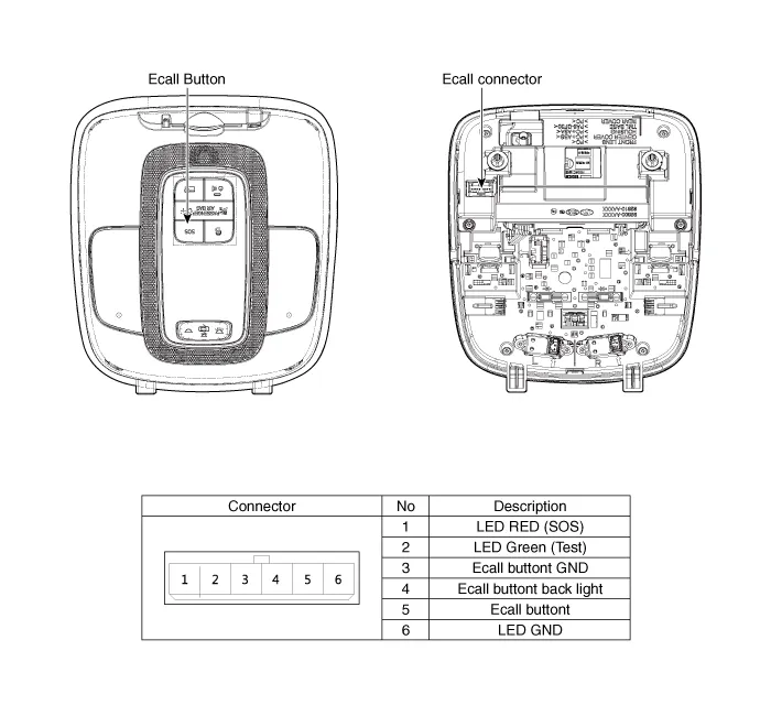 Components and components location Component • The eCall unit for AVN is equipped in AVN head unit. Repair procedures Removal You must make sure turn RED LED ON if you do any of the following.