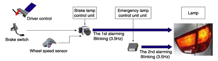 In case of quick brake by driver, the brake lamp or turn signal is blinked to warn against the vehicle at rear.