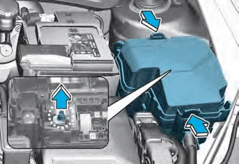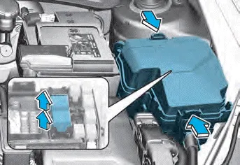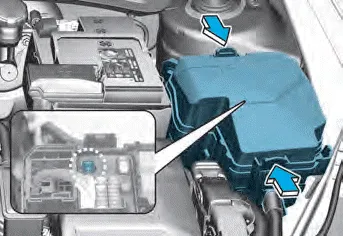 After checking the fuse box in the engine compartment securely close the fuse box cover inside the engine compartment, until it clicks.