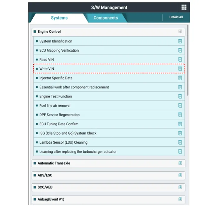 | 5. | Select "Vehicle S/W Management". |