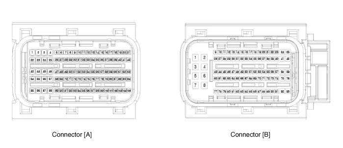 | 2. | TEST ECM CONNECTOR : Disconnect the ECM connector and visually check the ground terminals on ECM side and harness side for bent pins or poor contact pressure. If the problem is found, repair it. |