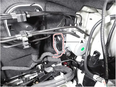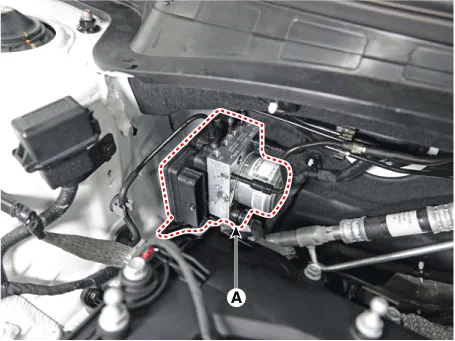 | 5. | Loosen the ABS control module mounting nut and then remove the ESC control module (A) from the vehicle.