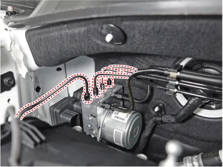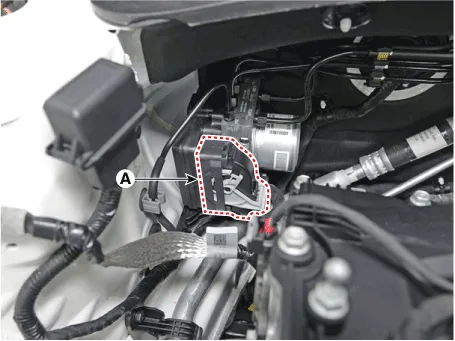 | 3. | Pull up the lock of the HECU connector and then disconnect the connector (A).