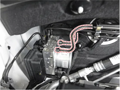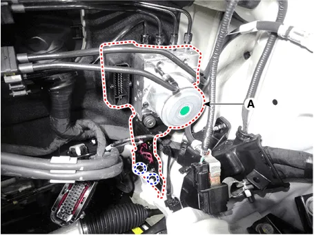 | 5. | Loosen the ABS control module mounting nut and then remove the ESC control module (A) from the vehicle.