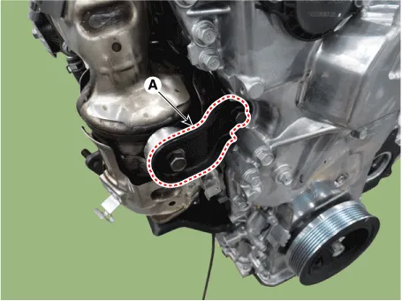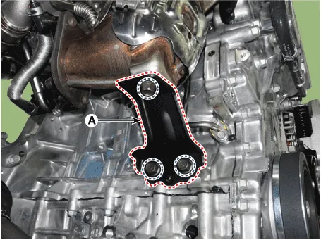 | 9. | Remove the warm up catalytic converter(WCC) upper stay bracket (A).