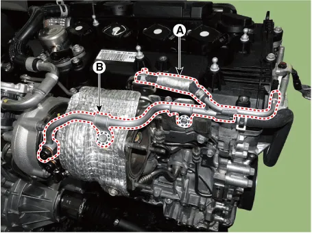 | 15. | Disconnect the turbo charger intake hoseB (A).