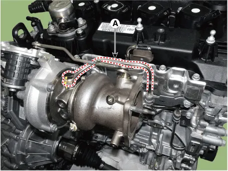 | 24. | Remove the turbo charger oil feed pipe(A).