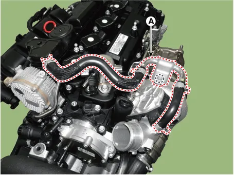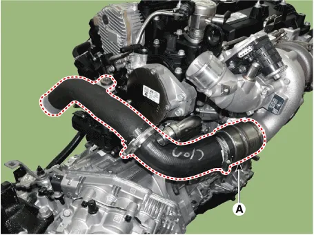 | 8. | Disconnect the turbo charger outlet hose (A).