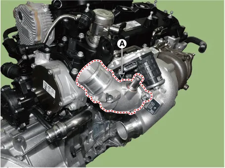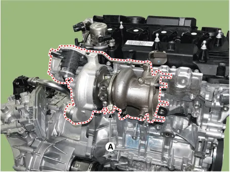 | 26. | Remove the exhaust manifold & turbo charger (A).
