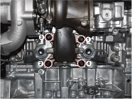Repair procedures Removal and Installation1.Remove the Turbocharger & Exhaust Manifold.(Intake And Exhaust System - "Exhaust Manifold")On-vehicle InspectionTurbocharger Diagnostic Flow If any problem related with turbocharger, such as lack of engine power, poor acceleration, abnormal engine noise or oil leaks, may occur, check the turbocharger according to the procedure as follows.
