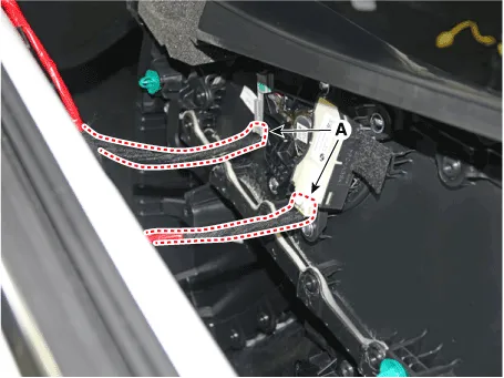 | 1. | Using a screwdriver or remover, remove the front door quadrant inner cover (A).