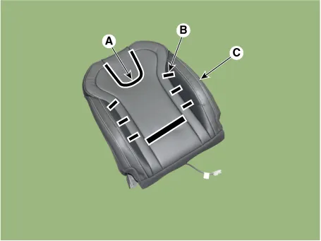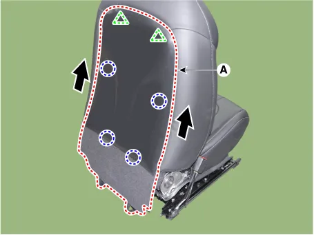 | 8. | Separate the front seat back cover protector, remove the front seat back cover (A).