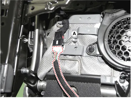 | 5. | Press the lock pin, disconnect the front seat cushion connector (A).