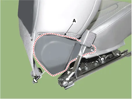 | 3. | Loosen the mounting screw and then remove the front seat outer shield inner cover (A).