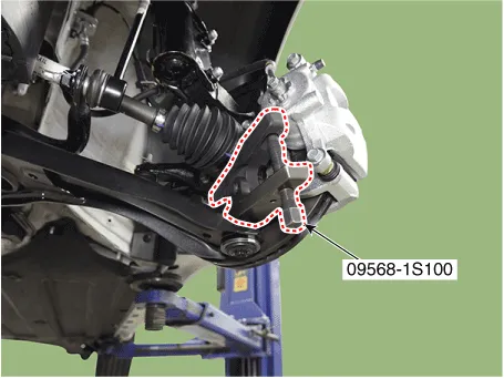 | 5. | Separate the lower arm ball joint by using the SST (09568-1S100) after loosening the lower arm mounting nut (A).