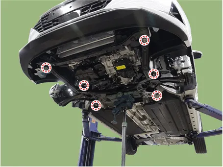 | 12. | Remove the sub frame after loosening the mounting bolts and nuts.