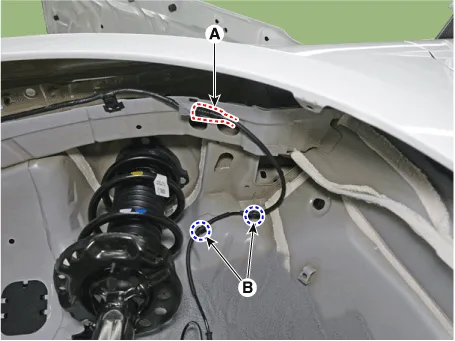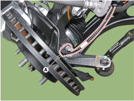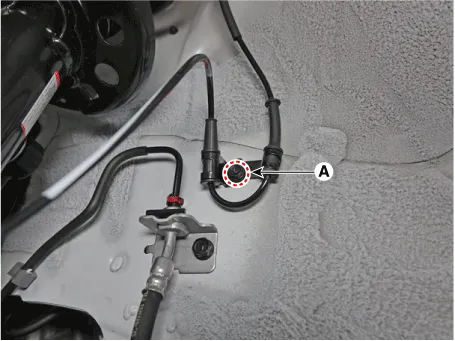 | 6. | Remove the front wheel speed sensor cable braket bolt (A).