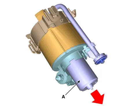 | 11. | Remove the fuel pump motor (A) from the fuel filter.