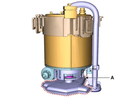 | 12. | Release the fixing hook and then remove the fuel filter (A) from the bracket.