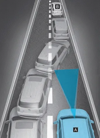 When a vehicle moves into your lane from an adjacent lane, it cannot be detected by the sensor until it is in the sensor's detection range. Smart Cruise Control may not immediately detect the vehicle when the vehicle changes lanes abruptly. In this case, you must maintain a safe braking distance, and if necessary, depress the brake pedal to reduce your driving speed in order to maintain a safe distance.