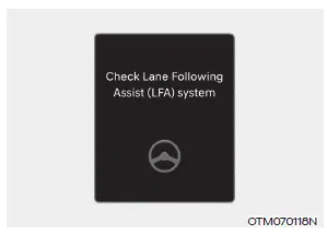 When Lane Following Assist is not working properly, the ‘Check Lane Following Assist (LFA) system’ warning message will appear on the cluster. If this occurs, we recommend that the function be inspected by an authorized HYUNDAI dealer.