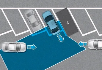 Rear Cross-Traffic Safety system may detect vehicles passing by in front of you when parking in reverse into a parking space with a wall or structure in the rear or side area. If this occurs, the system may unnecessarily warn the driver and control the brake.