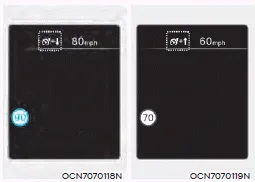 If the speed limit of the road changes during the operation of Manual Speed Limit Assist or Smart Cruise Control, an arrow in the direction of up or down is displayed to inform the driver that the set speed needs to be changed. At this time, the driver can change the set speed according to the speed limit by using the + or – switch on the steering wheel.