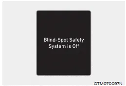 When the engine is restarted with the system off, the ‘Blind-Spot Safety System is Off’ message will appear on the cluster.