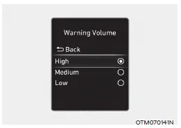 If you change the Warning Volume, the warning volume of other Driver Assistance systems may change.