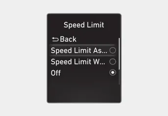 With the engine on, select or deselect ‘Driver Assistance → Speed Limit’ from the Settings menu to set whether or not to use each function.