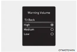 If you change the Warning Volume, the Warning Volume of other Driver Assistance systems may change.