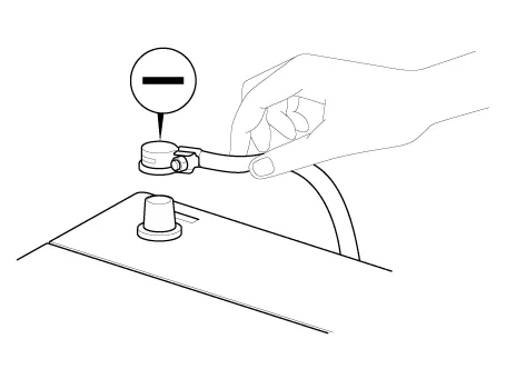 | 1. | Be sure to disconnect the battery cable from the negative (-) terminal of the battery. |