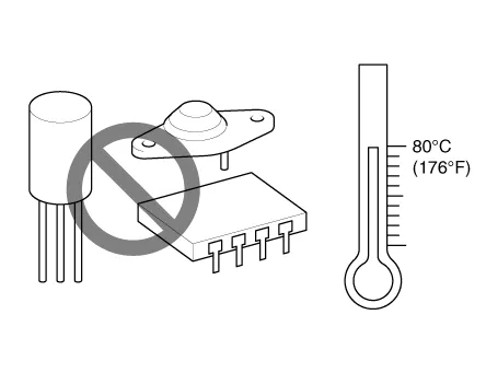| 6. | The electronic parts used in the computer, relays, etc. are easily damaged by heat. If there is a need for service operations that may cause the temperature to exceed 80°C (176°F), remove the electronic parts beforehand.