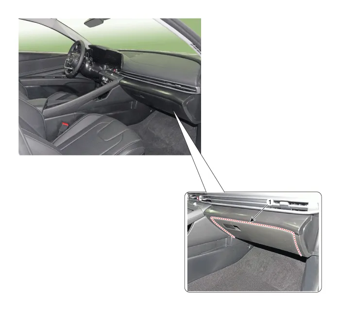 Component Location [This illustration shows the LHD type. RHD type is symmetrical.]1. Glove box housing cover