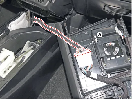 | 7. | Press the lock pin, separate the console upper cover connector (A).