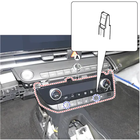 | 9. | After loosening the mounting screws, remove the A/C & heater controller unit (A).