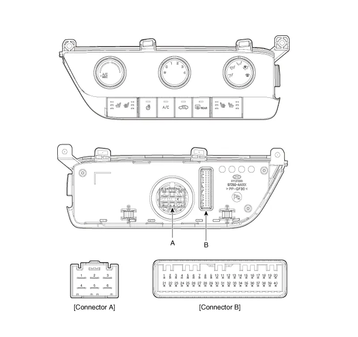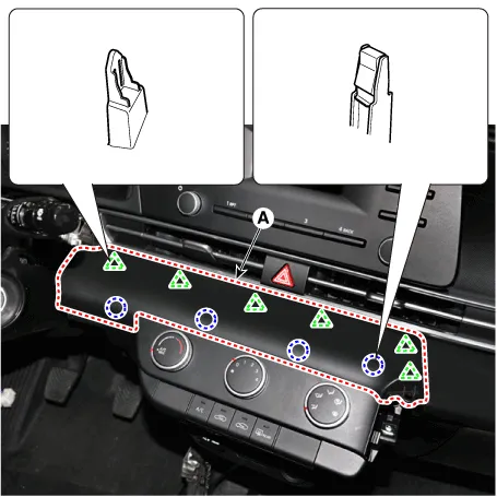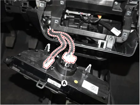 | 10. | Disconnect the A/C & heater controller connectors (A).