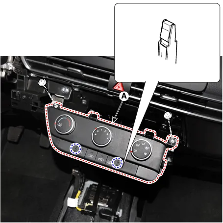 | 9. | After loosening the mounting screws, remove the A/C & heater controller unit (A).