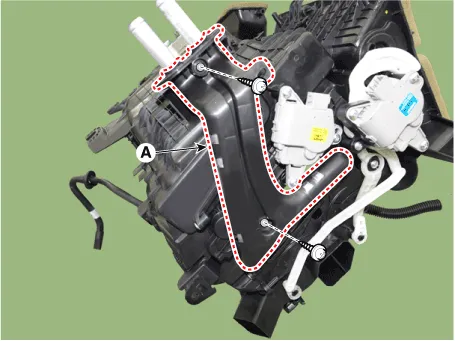 | 3. | Remove the heater core cover (A) after loosening the mounting screws.